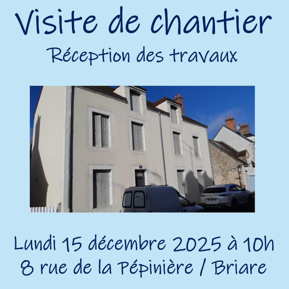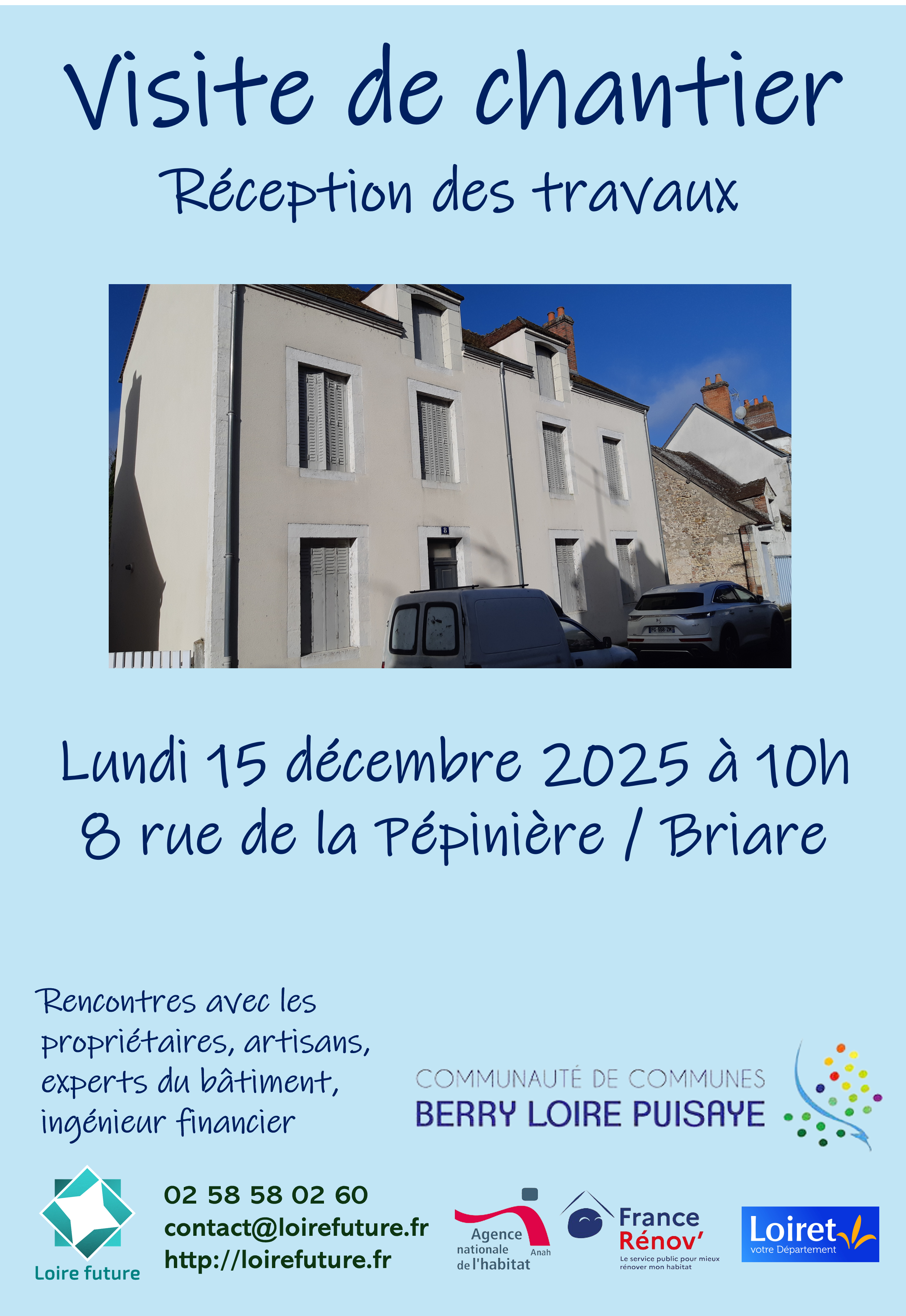 Venez en discuter le lundi 15 décembre à 10h lors d'une visite de chantier au 8 rue de la Pépinière à Briare
